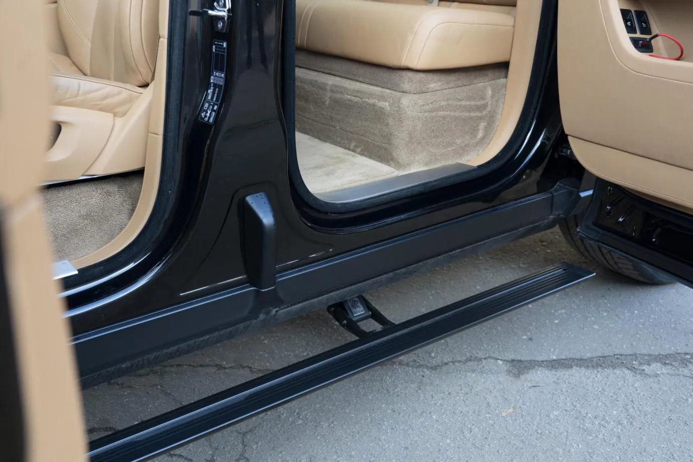 Premium Electric Side Steps // For this luxury SUV build, the Gangsta Paradise automatic running boards serve as the ultimate accessibility upgrade, proving that style and function can coexist seamlessly. Outfitted with integrated LED lighting, these steps were custom-configured at the client's request, who approached us after market options failed to meet both durability and design standards. The goal was to create steps that looked OEM+ while providing superior weather resistance. To complete the transformation, custom rubber tread inserts were added, allowing surefooted entry in all conditions—yes, even mountain terrain. The result is a perfect fusion of utility and urban sophistication.