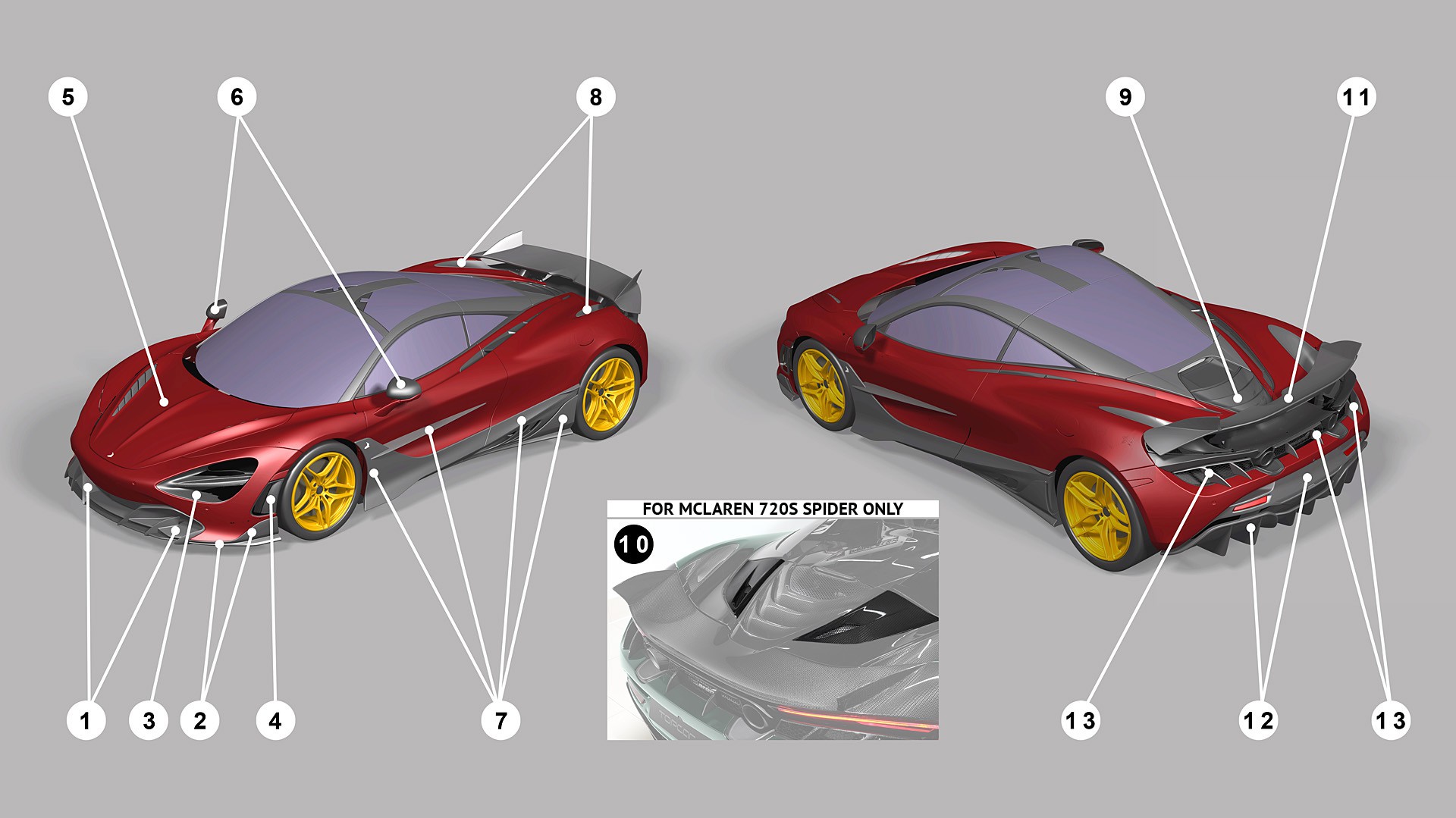 Fury body kit, visible carbon fibre glossy - Twill 2x2 (McLaren original carbon fiber) or Twill 4x4 (Pagani Style)