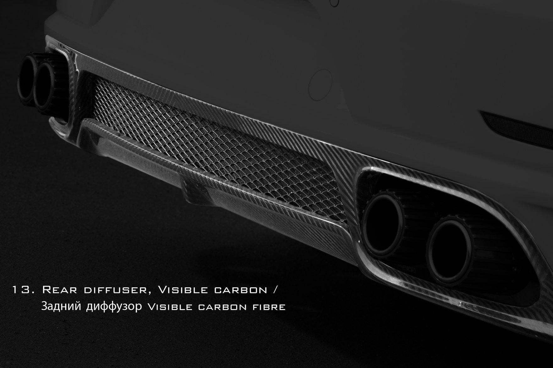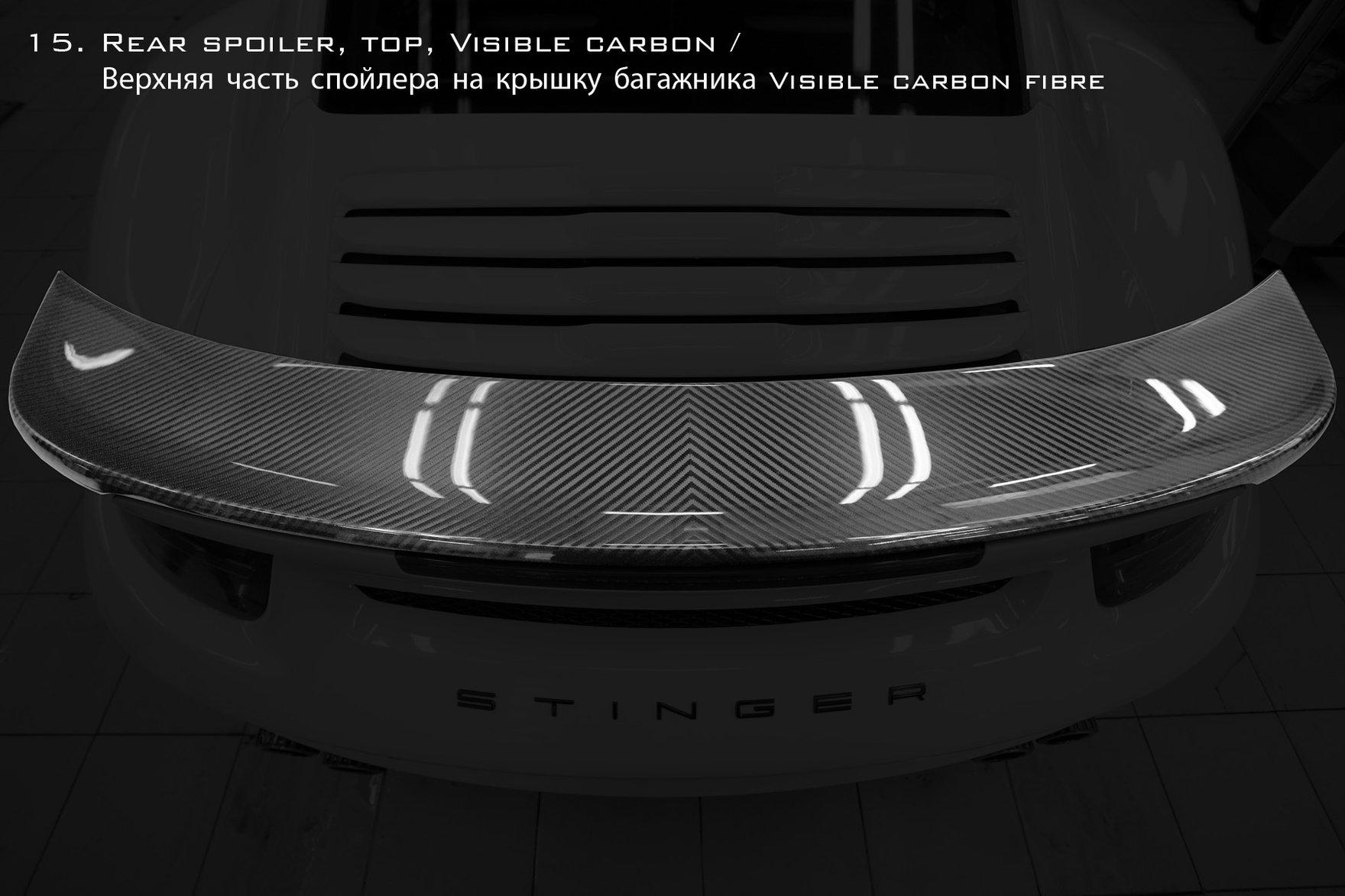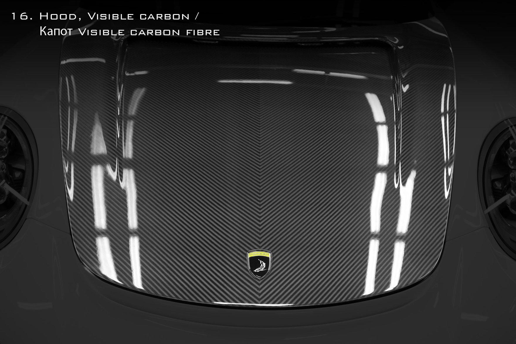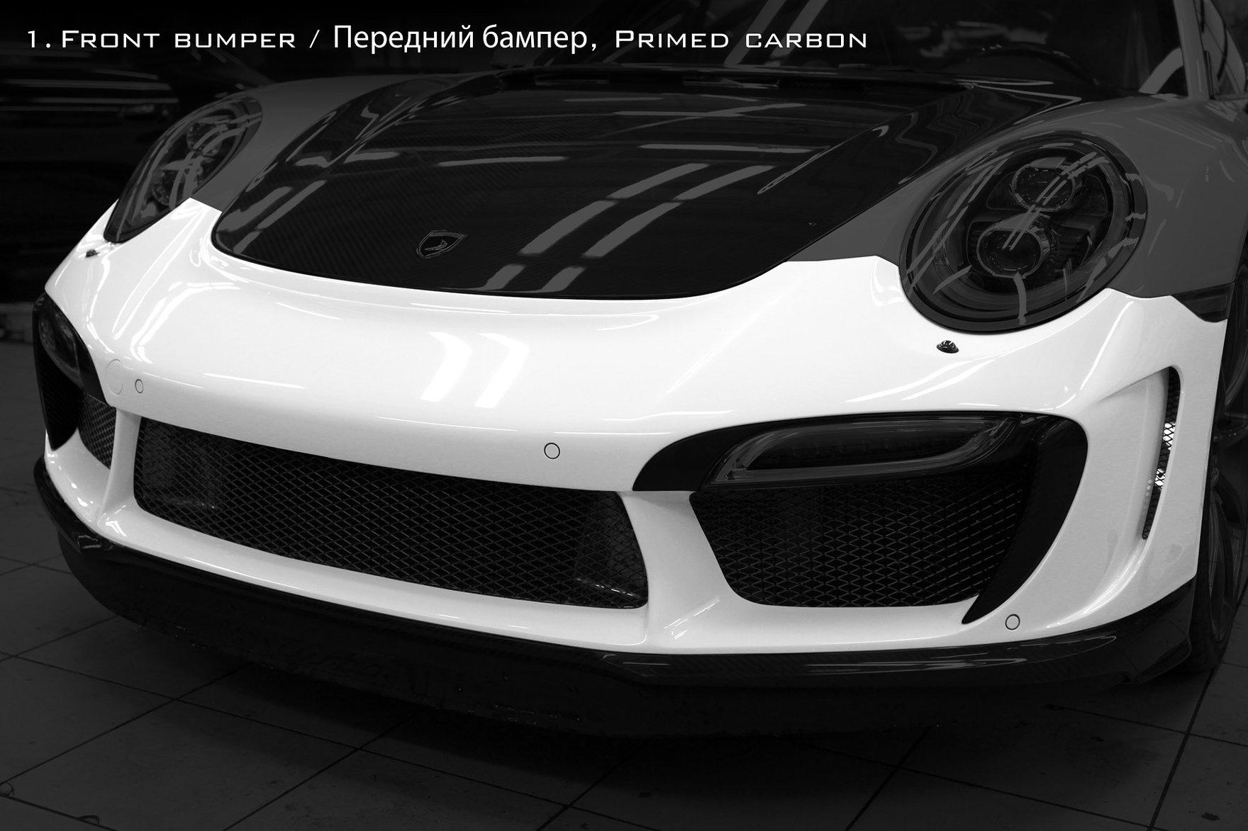 TOPCAR is happy to present the very new and the most exclusive work (tuning Porsche) of its professional life the aerodynamic kit Stinger GTR for Porsche 991 Turbo and Turbo S. This is indeed the most sophisticated project TOPCAR has ever done, it took 9 months to finish and concidered as bringing a new child to life. The kit consists of 24 class-A carbon fiber composite body panels which can be fitted professionally only at TOPCAR specialized center due to high standard precision job where 90% of exterior is to be changed completely, several carbon panels are to be bonded with the steel body using hi-tech materials and know how skills. Some parts of the kit could be lacquered to highlight the beauty of carbon fibers. Due to high complexity of the project TOPCAR specialists are only able to assemble two cars a month at their premises. By special request the kit could be assembled at clients site with TOPCAR specialists travel and accommodation costs covered. On top of that: - the car performance could be increased by 60 hp and 130 Nm. using special HP kit. - the look of your car could be personalized even further by selection of topnotch wheels from our partner ADV.1 Wheels.