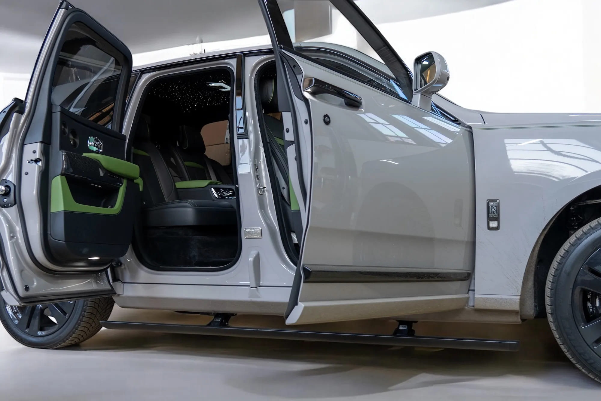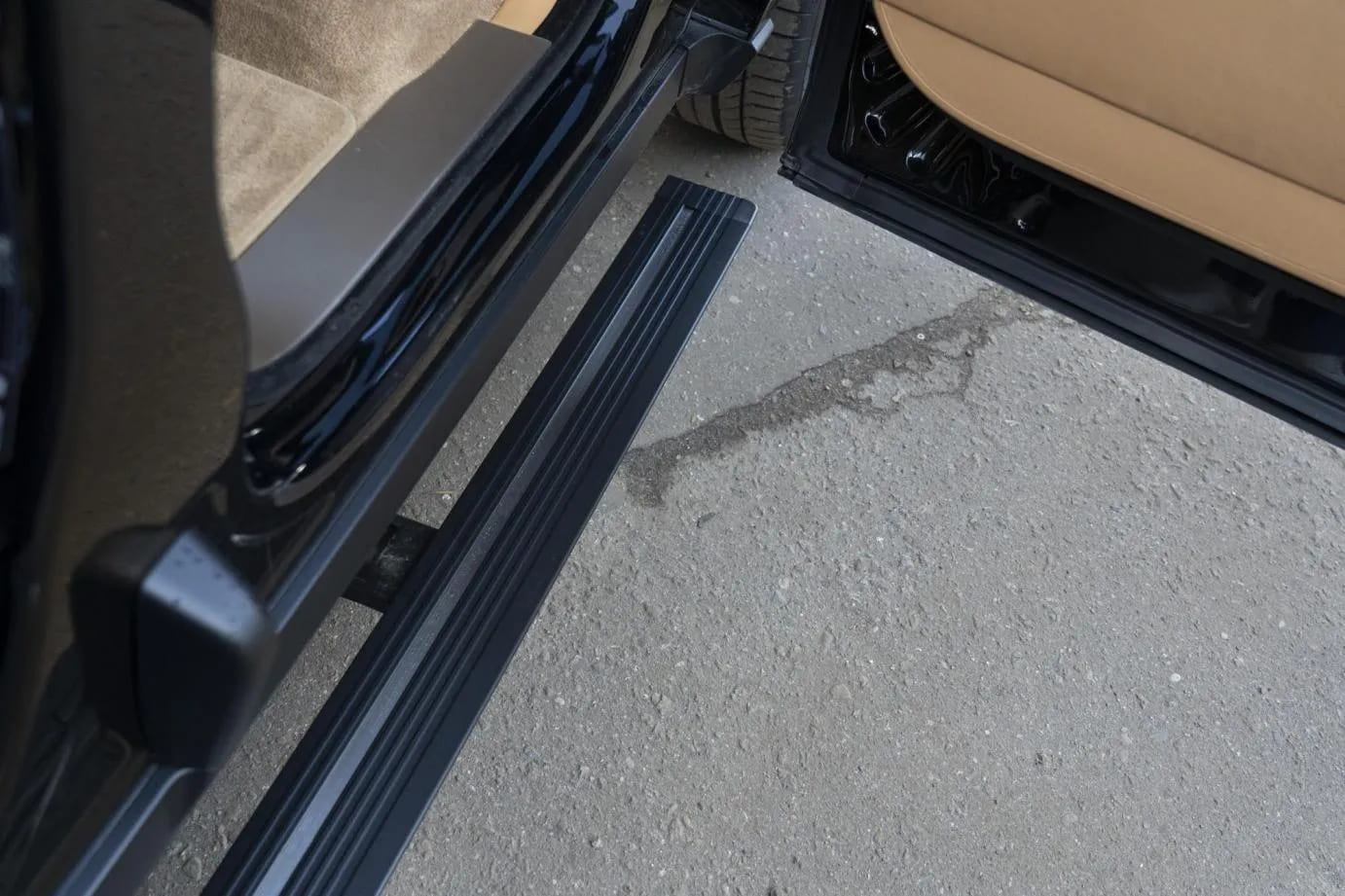 Premium Electric Side Steps // For this luxury SUV build, the Gangsta Paradise automatic running boards serve as the ultimate accessibility upgrade, proving that style and function can coexist seamlessly. Outfitted with integrated LED lighting, these steps were custom-configured at the client's request, who approached us after market options failed to meet both durability and design standards. The goal was to create steps that looked OEM+ while providing superior weather resistance. To complete the transformation, custom rubber tread inserts were added, allowing surefooted entry in all conditions—yes, even mountain terrain. The result is a perfect fusion of utility and urban sophistication.