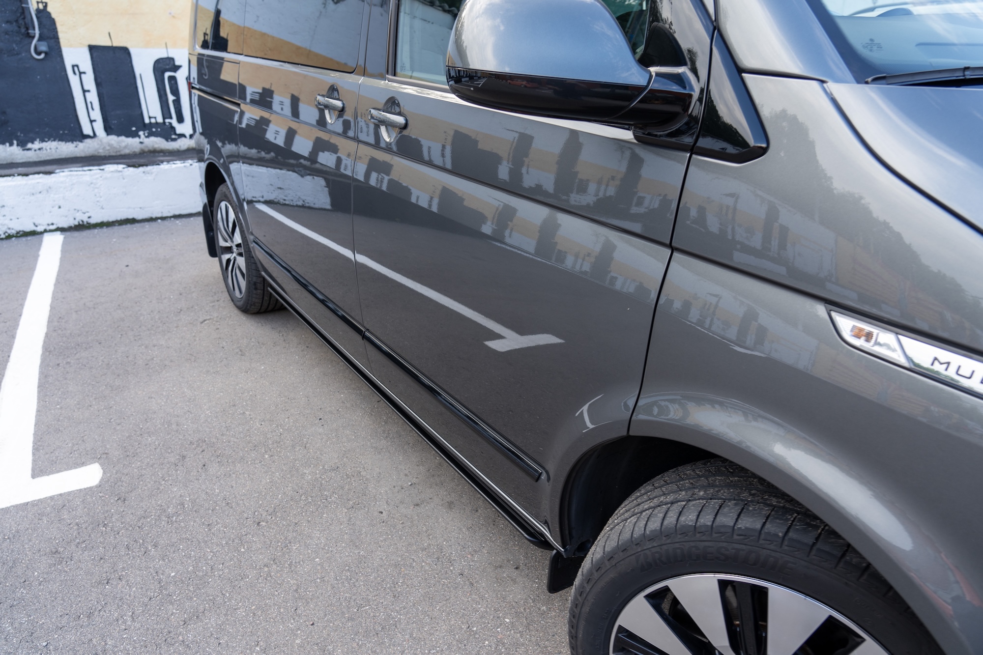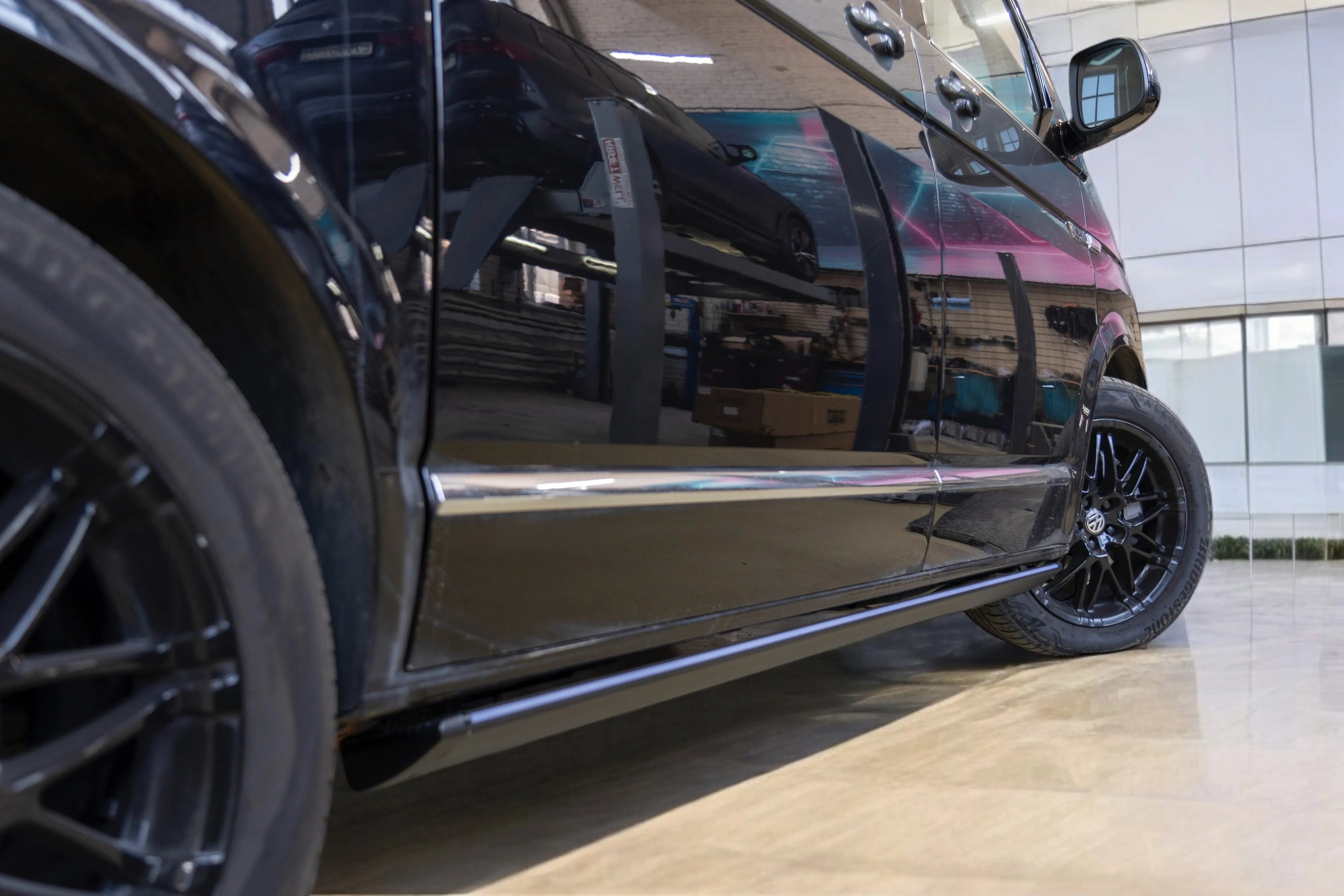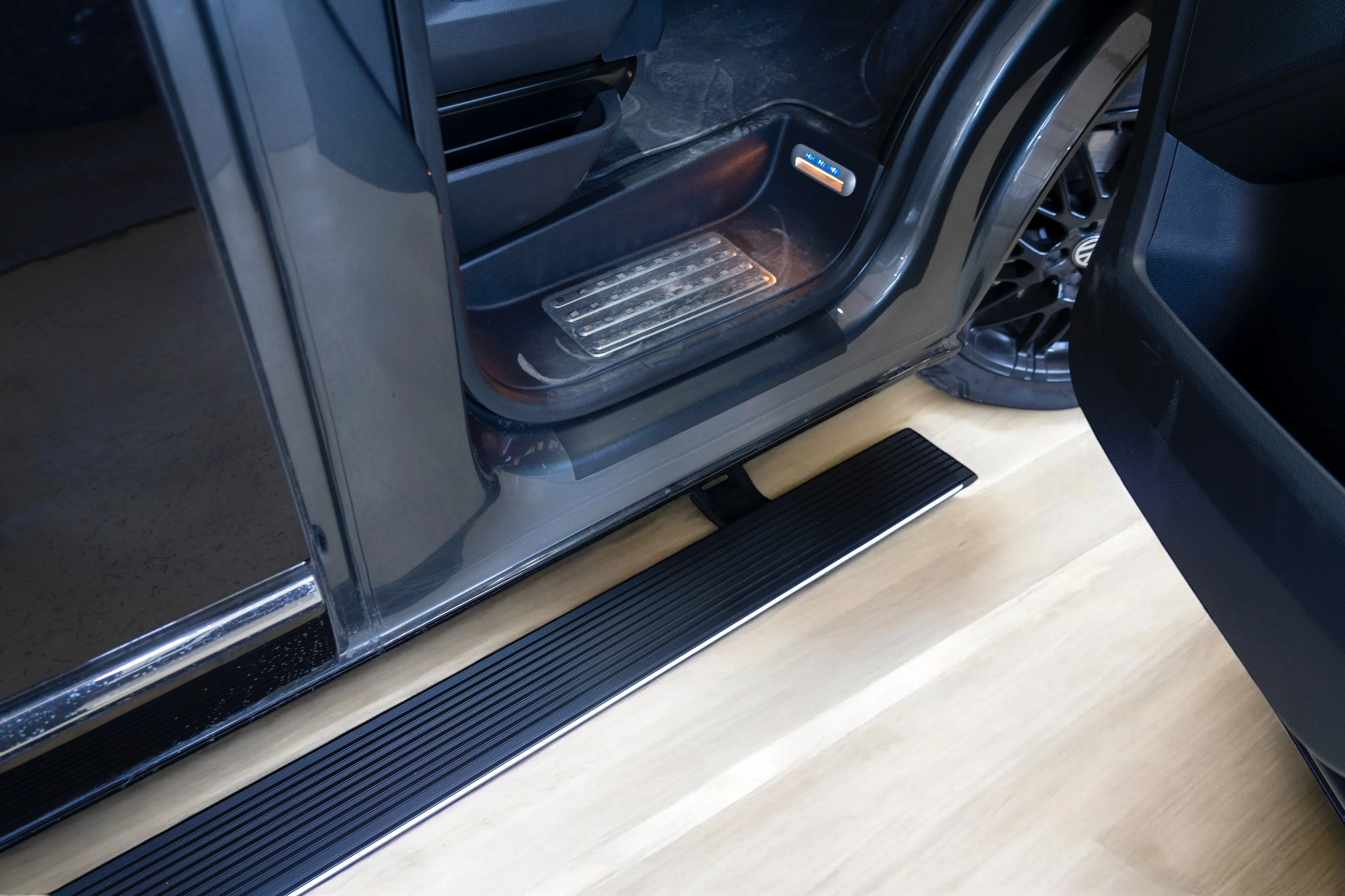 Premium Electric Side Steps // For this luxury SUV build, the Gangsta Paradise automatic running boards serve as the ultimate accessibility upgrade, proving that style and function can coexist seamlessly. Outfitted with integrated LED lighting, these steps were custom-configured at the client's request, who approached us after market options failed to meet both durability and design standards. The goal was to create steps that looked OEM+ while providing superior weather resistance. To complete the transformation, custom rubber tread inserts were added, allowing surefooted entry in all conditions—yes, even mountain terrain. The result is a perfect fusion of utility and urban sophistication.