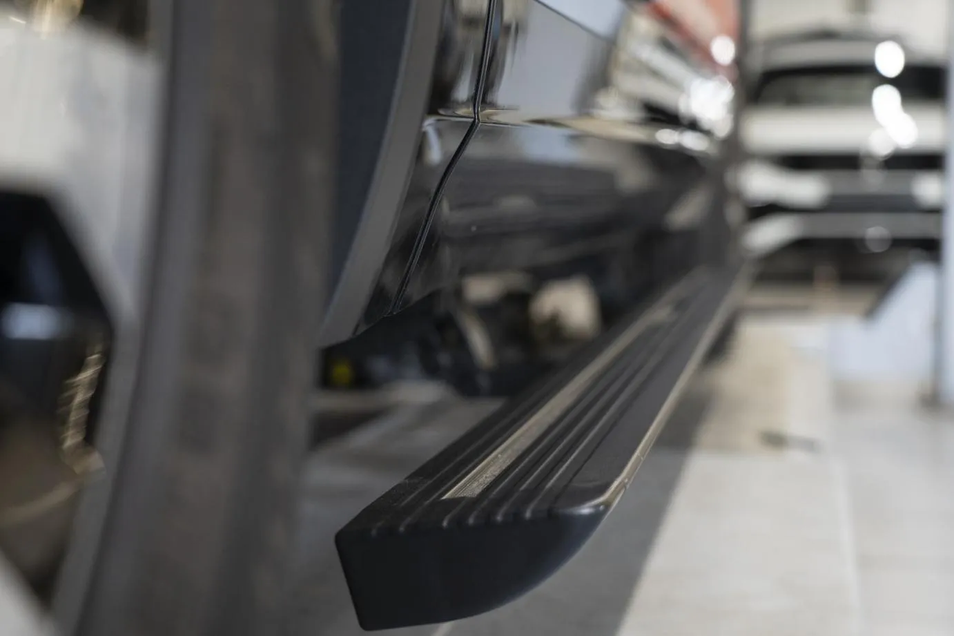 Premium Electric Side Steps // For this luxury SUV build, the Gangsta Paradise automatic running boards serve as the ultimate accessibility upgrade, proving that style and function can coexist seamlessly. Outfitted with integrated LED lighting, these steps were custom-configured at the client's request, who approached us after market options failed to meet both durability and design standards. The goal was to create steps that looked OEM+ while providing superior weather resistance. To complete the transformation, custom rubber tread inserts were added, allowing surefooted entry in all conditions—yes, even mountain terrain. The result is a perfect fusion of utility and urban sophistication.